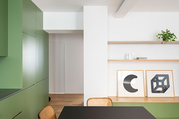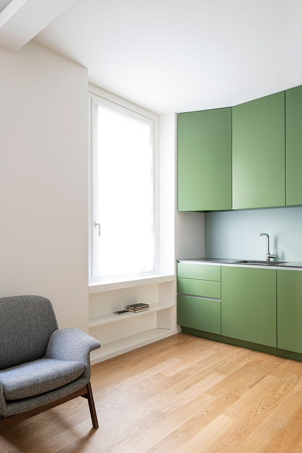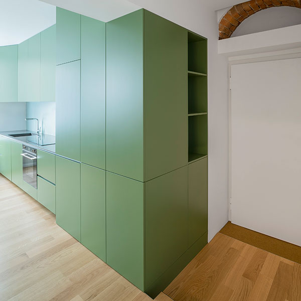 The renovation of an apartment in the city center of Milan provides an opportunity to fully rethink the interior spatial organization in order to meet the young owners current needs.