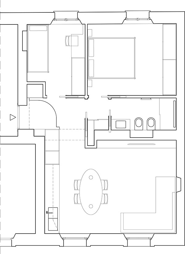 La ristrutturazione interna di un appartamento nel centro di Milano diviene un’opportunità per riconfigurare gli spazi interni al fine di rispondere alle nuove esigenze dei giovani committenti.