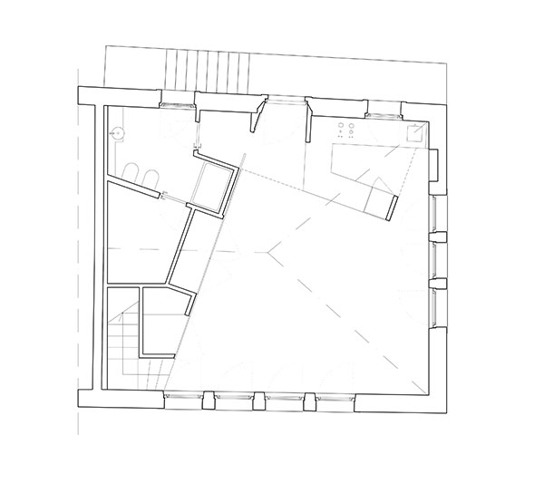 The plan of the second, on the roof top, thanks to the new roof structure has been cleared from all structural constrains.