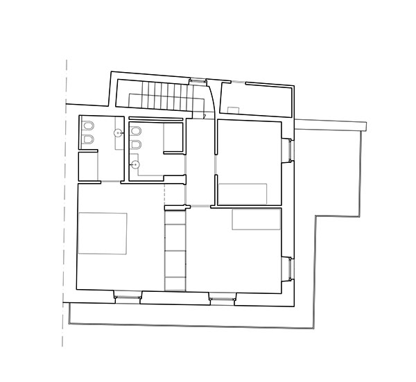 La seconda, all’ultimo piano, grazie al rifacimento della struttura del tetto che ha consentito lo svuotamento da precedenti ingombri strutturali, è caratterizzata da una nuova organizzazione planimetrica fortemente influenzata dall’affaccio panoramico sul contesto circostante.
