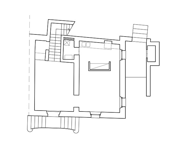 La prima, che occupa piano terra e primo, è caratterizzata da una distribuzione interna rispettosa dell’orditura delle facciate.