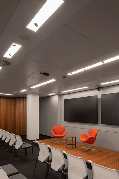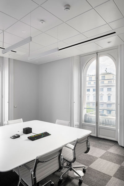 All’interno di un palazzo storico del centro di Milano, il progetto ha previsto il restyling degli ambienti di lavoro suddivisi su tre piani fuori terra ed il rifacimento dell’auditorium al piano interrato.