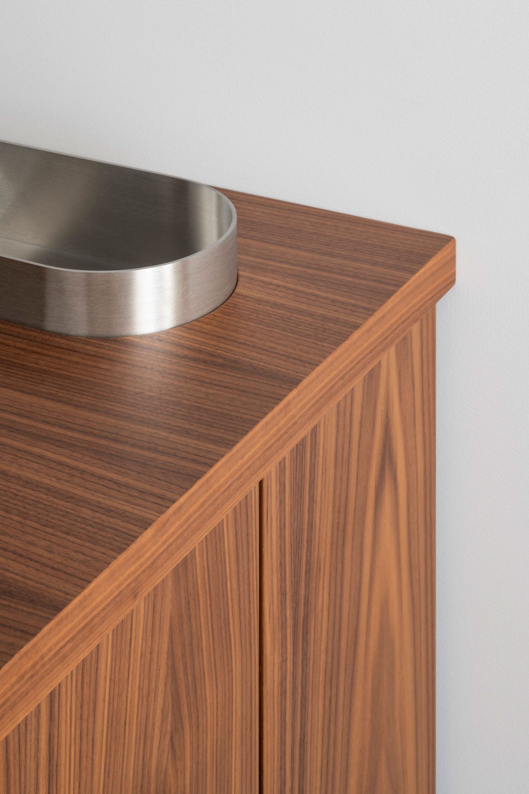 In line with the philosophy of the company, the office has been equipped with a new wellness room, a private environment where a custom-made furniture unit, which contains all the necessary accessories for a regenerating break, dialogues with the two 1900s original restored door frames.